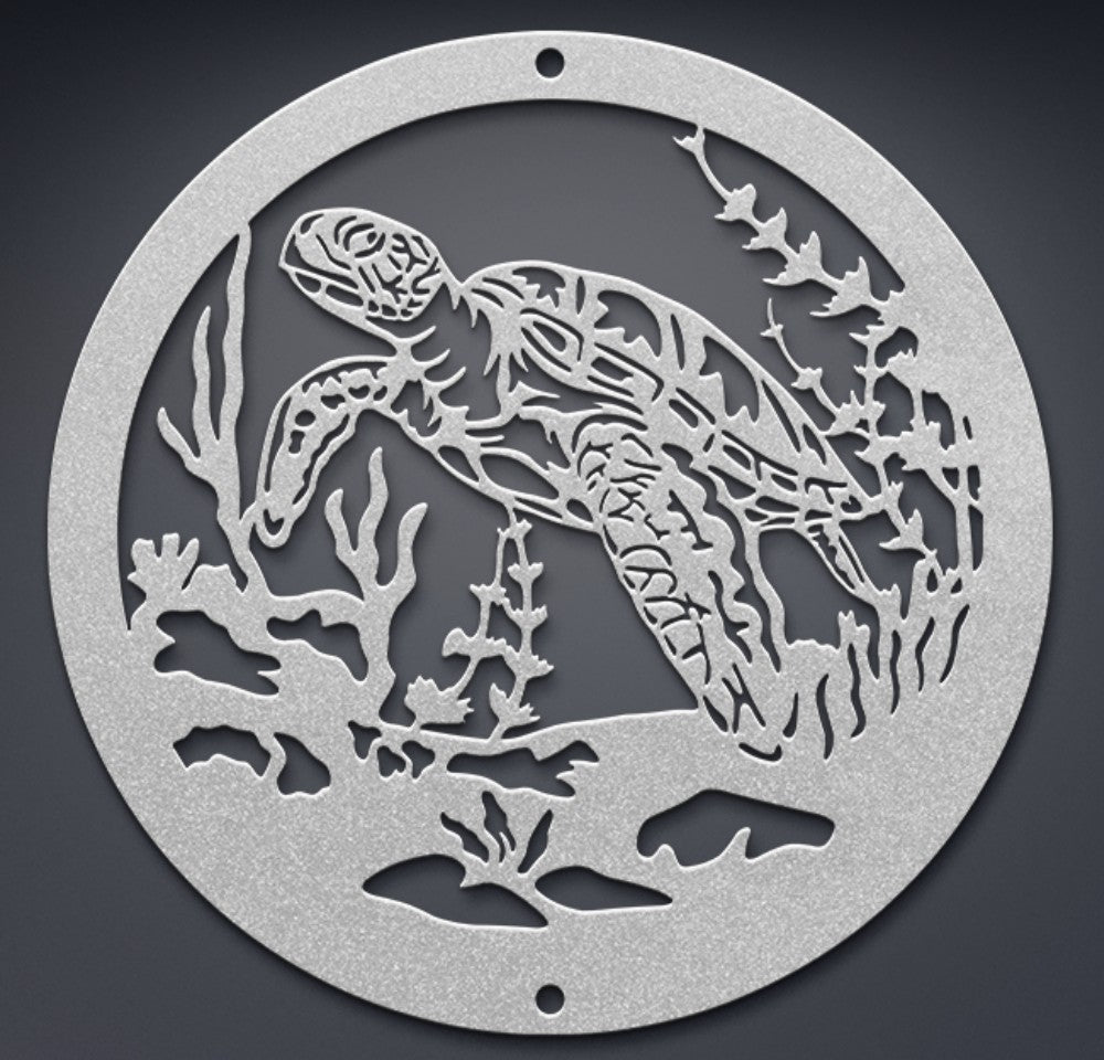 Dive into the beauty of the ocean with our Turtle Metal Wall...
