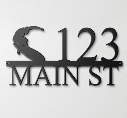 Custom Surfer Girl #2 Die Cut Metal Address Sign