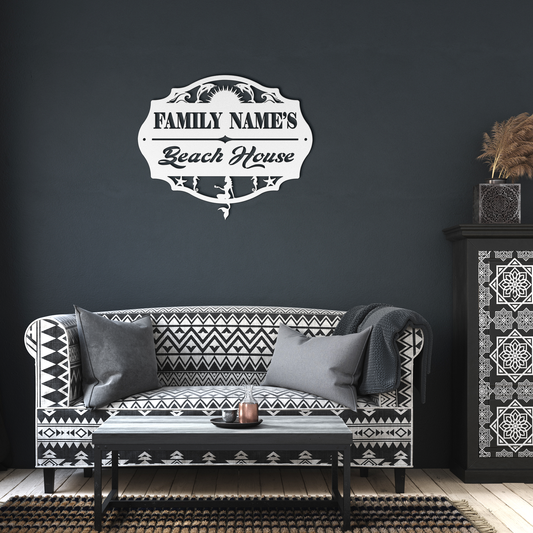 Custom Beach House Metal Sign – Personalized Coastal Family Name Plaque