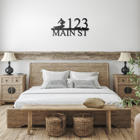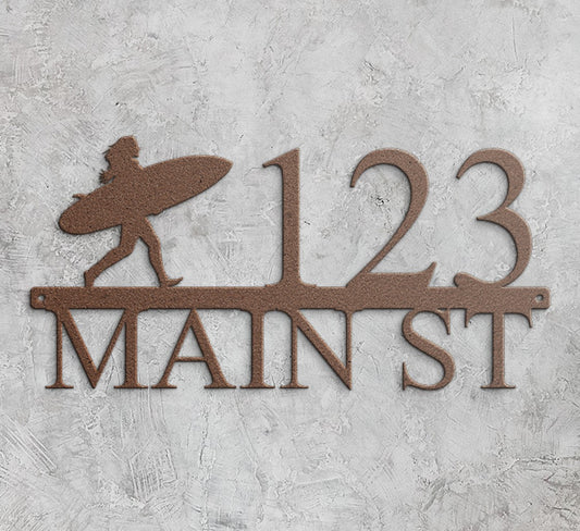 Custom Surfer Address Sign - Personalized Metal Wall Art