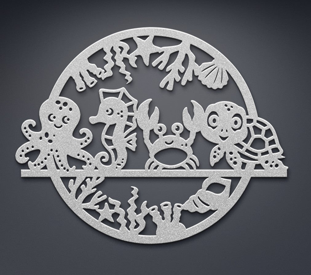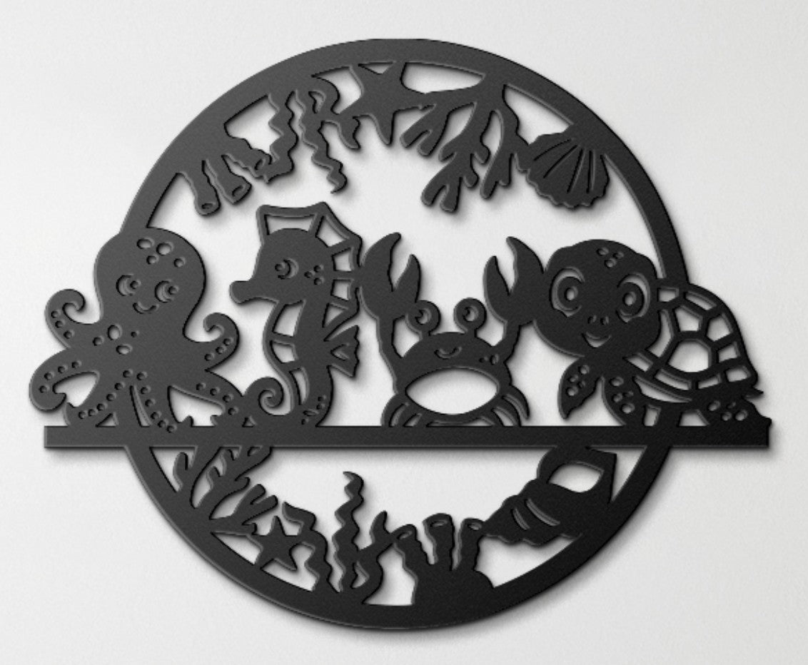 Cute Ocean Animals Metal Wall Art – Coastal Beach House Decor | Nautical Kids Room Sign