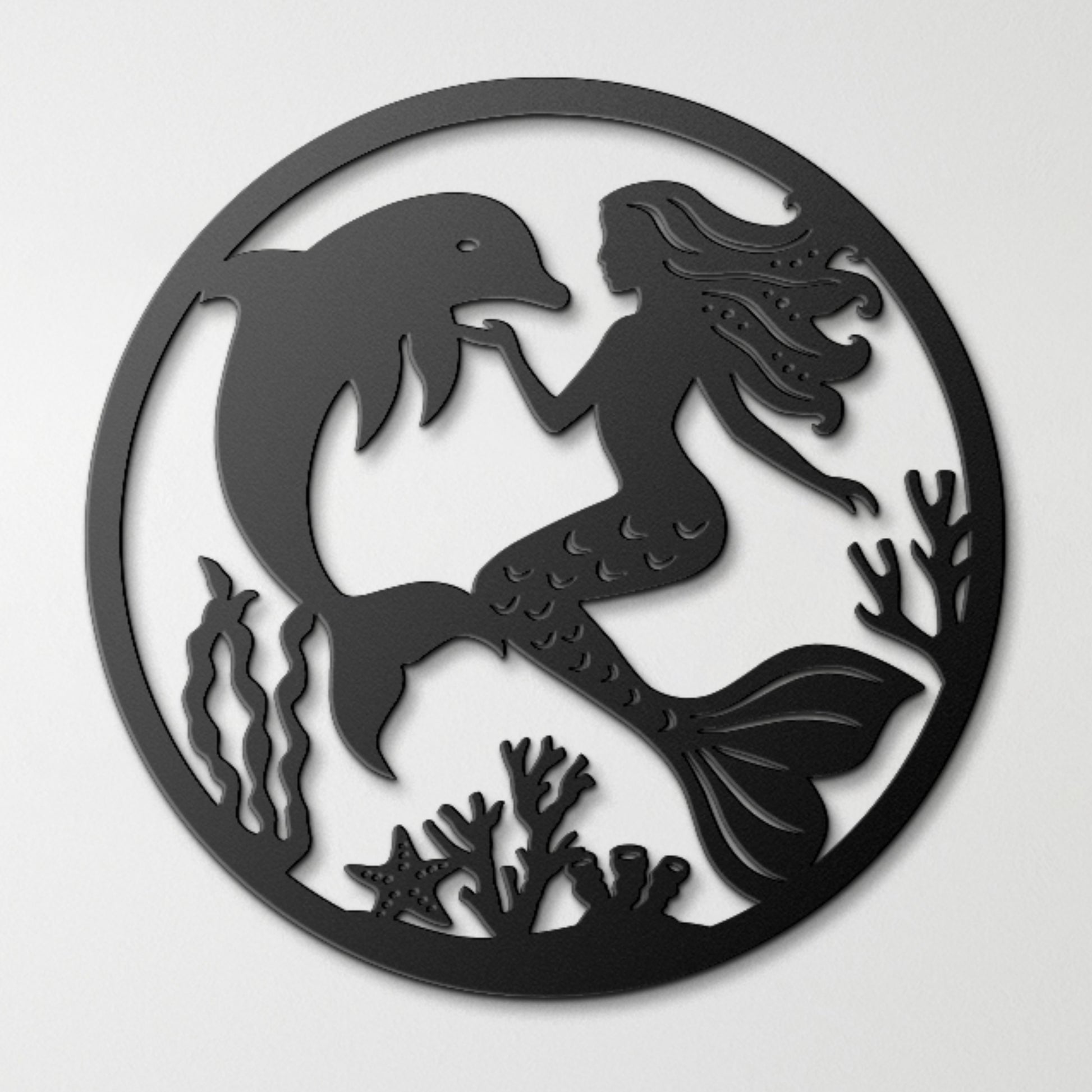 Dive into the magic of the sea with this Mermaid & Dolphin Metal Wall Art, a stunning depiction of an underwater friendship between a graceful mermaid and a playful dolphin. Surrounded by coral, seaweed, and ocean life, this intricately designed piece captures the mystical beauty of the deep sea. Perfect for beach homes, ocean-themed rooms, coastal-inspired interiors, or outdoor patios, this enchanting metal sign adds a whimsical and serene touch to any space.