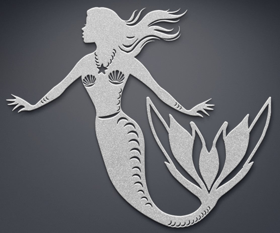 Expertly cut from 18-gauge steel and finished with a durable powder coat, this metal artwork is designed to withstand the elements, making it perfect for both indoor and outdoor display. Available in multiple sizes and colors, this elegant mermaid design effortlessly complements coastal, rustic, and modern decor styles.