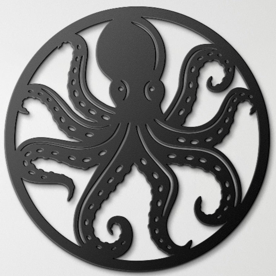 Made from 18-gauge steel and finished with a weather-resistant powder coat, this metal octopus design is built for both indoor and outdoor use. Available in multiple sizes and color finishes, this artwork seamlessly complements coastal, modern, and ocean-inspired decor.