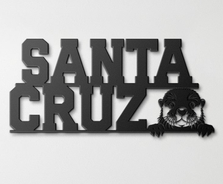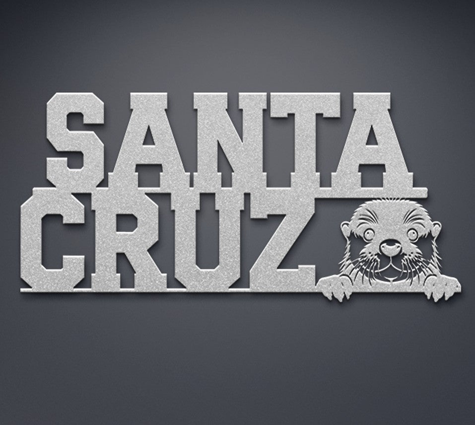 Celebrate the charming spirit of Santa Cruz with this adorable Santa Cruz Otter Metal Wall Art. Featuring a playful otter peeking over a customizable text panel, this die-cut metal sign captures the fun and vibrant essence of coastal living. Perfect for beach houses, coastal-themed rooms, or as a unique gift for ocean enthusiasts, this handcrafted piece adds character and charm to any space.