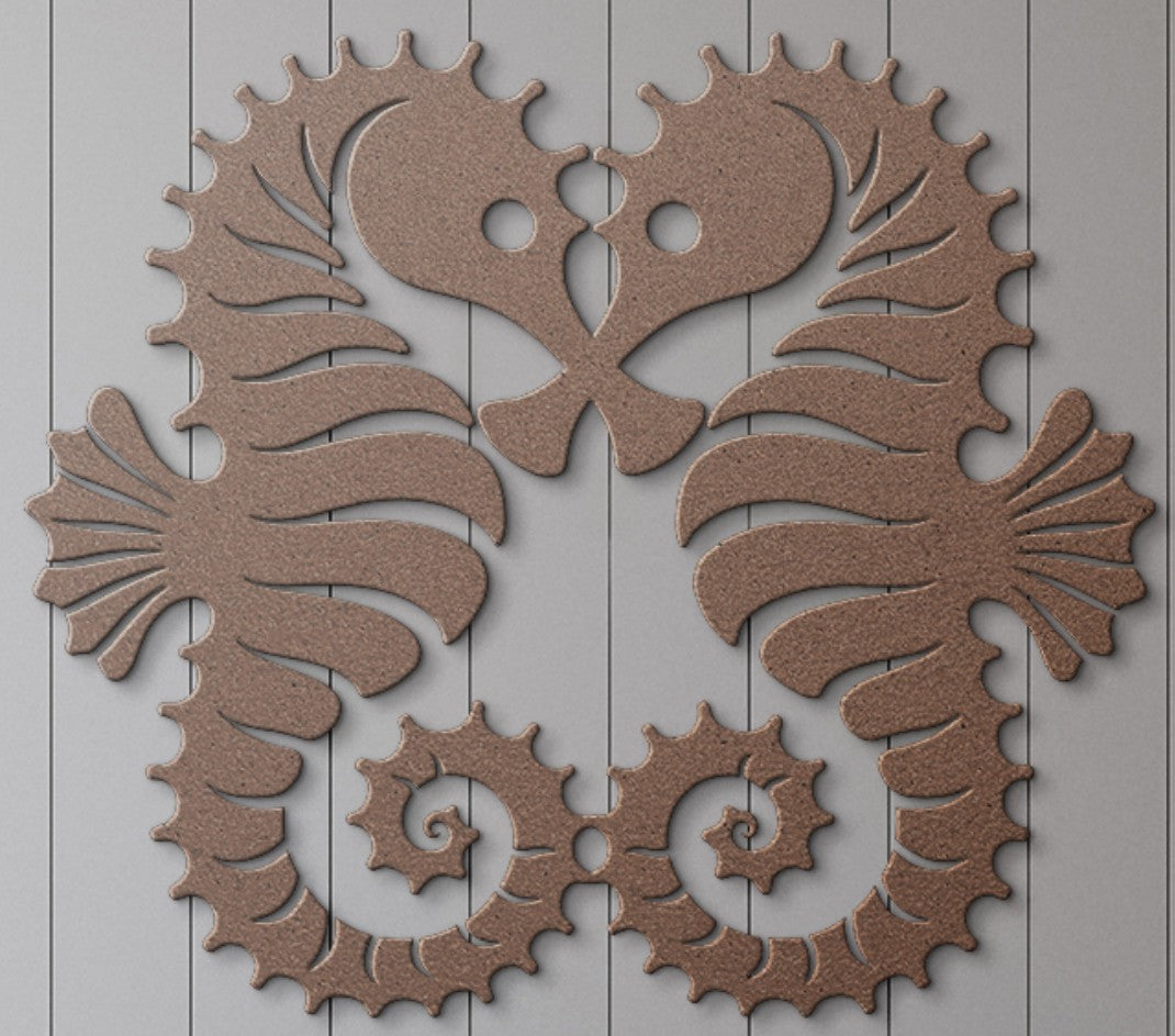 Add a touch of elegance and romance to your space with this Seahorse Duo Metal Wall Art. Featuring two intricately designed seahorses forming a heart shape, this piece beautifully captures the grace and mystery of the sea. Perfect for beach houses, coastal-inspired interiors, and ocean lovers, this design brings a sense of tranquility and connection to any setting.