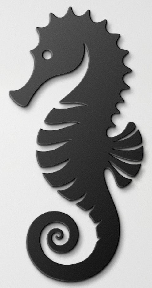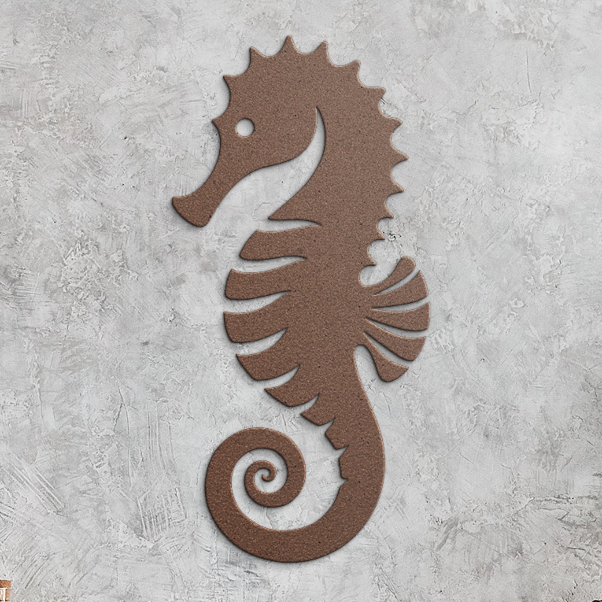 Expertly cut from 18-gauge steel and finished with a durable powder coat, this metal artwork is built for both indoor and outdoor display. Available in multiple sizes and colors, this seahorse silhouette complements modern, nautical, and rustic decor styles alike.