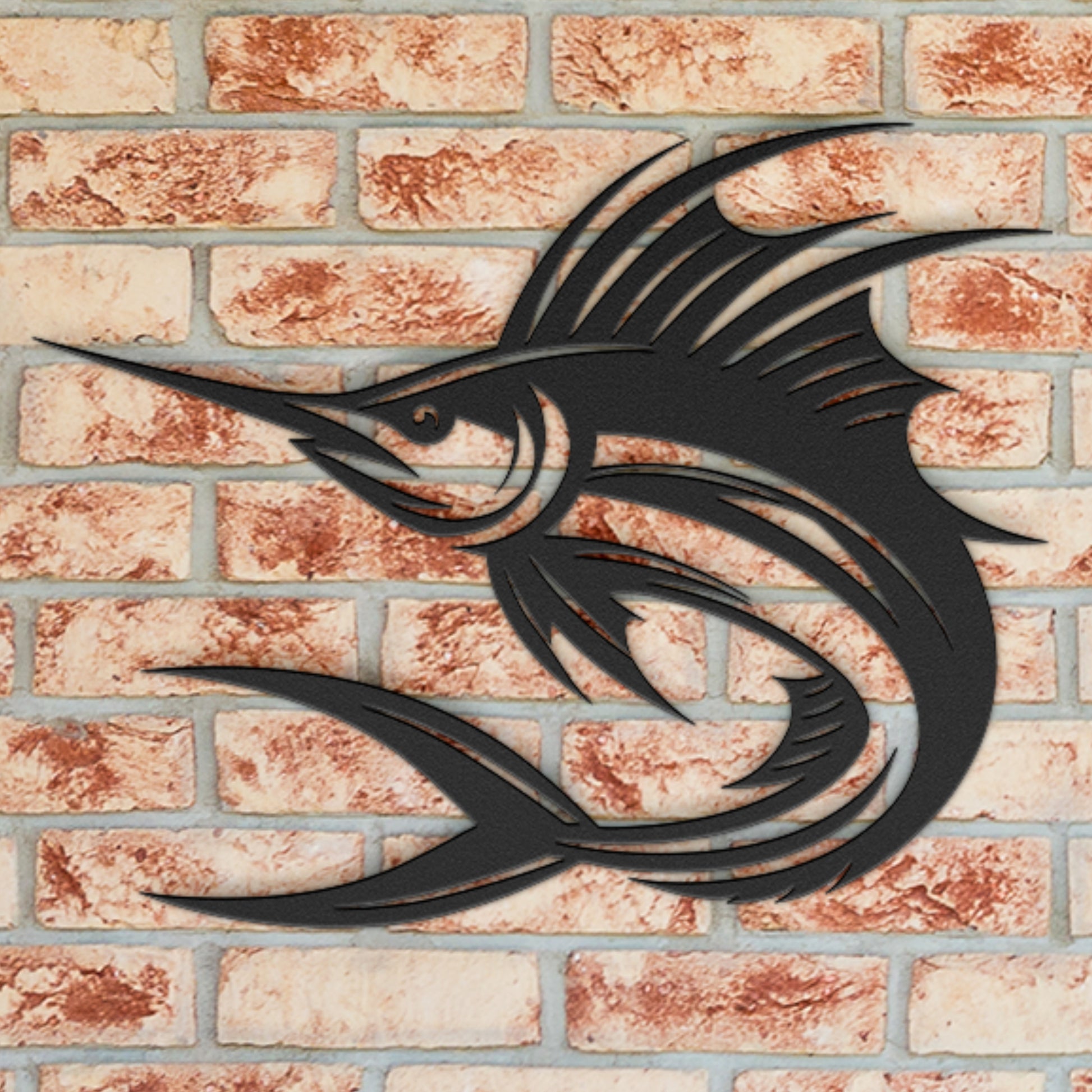 Showcase your love for deep-sea adventure and sport fishing with this Swordfish Metal Wall Art. Featuring a dynamic, streamlined depiction of a swordfish (or marlin) in motion, this design embodies speed, power, and grace. Whether you're decorating a beach house, fishing lodge, or nautical-inspired space, this bold and sophisticated piece adds a striking oceanic touch to any setting.