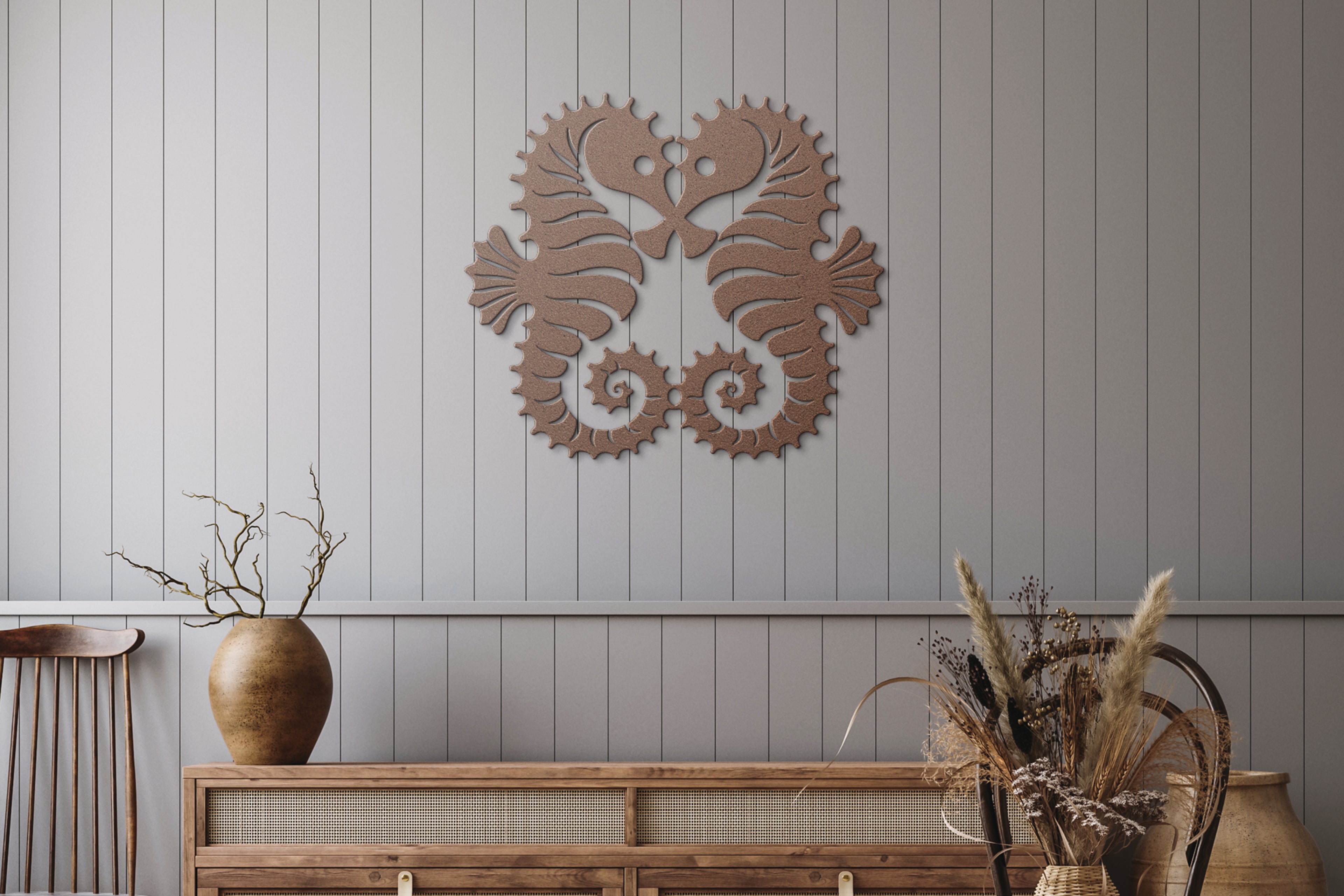Seahorse Duo Metal Wall Art – Romantic Coastal Nautical Steel Decor