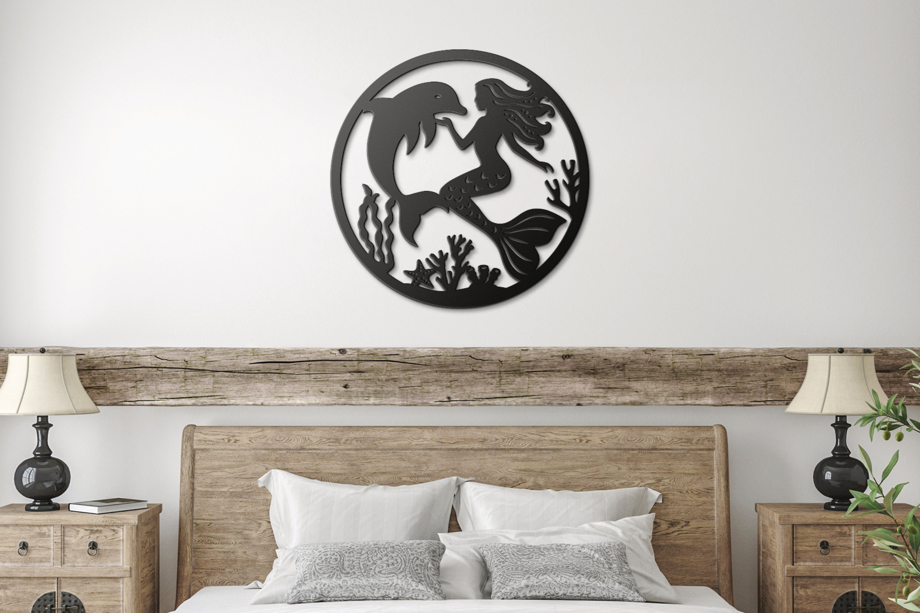 Mermaid & Dolphin Metal Wall Art – Enchanting Ocean-Inspired Coastal Decor